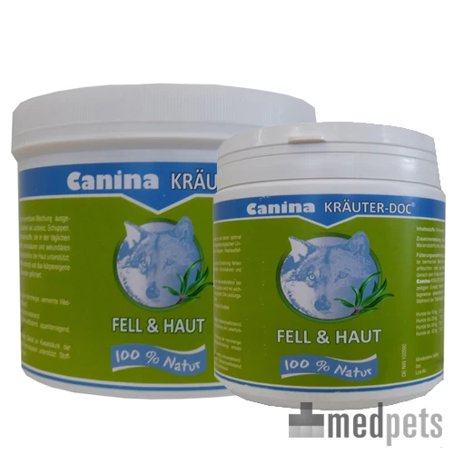 Canina KrĂ€uter-Doc Fell & Haut, zur natĂŒrlichen UnterstĂŒtzung von Haut und Haar bei Juckreiz, Schuppen, Allergien und Haarausfall.
