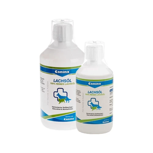 Canina Lachsöl ist 100 % reines Lachsöl, reich an mehrfach ungesĂ€ttigten FettsĂ€uren fĂŒr Hunde und Katzen. Da Tiere diese FettsĂ€uren nicht selbststĂ€ndig produzieren können, ist es wichtig, dass Sie diese mit der Nahrung aufnehmen. Dieses Ăl unterstĂŒtzt Haut, Haarwachstum und fördert den Stoffwechsel.