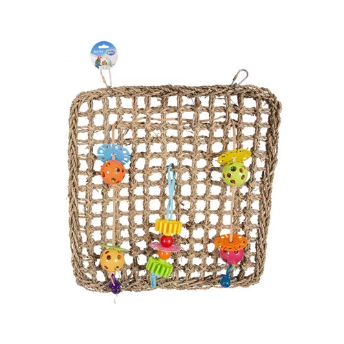 Kletternetz für Vögel aus Seegras. Das Kletternetz ist mit buntem Spielzeug ausgestattet, mit dem Ihr Vogel stundenlang spielen kann.