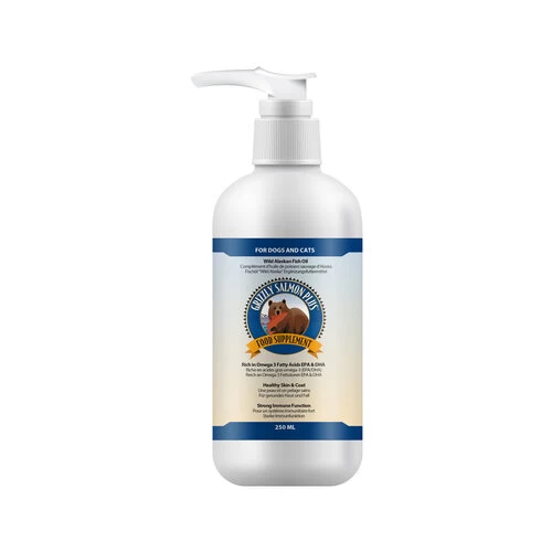 Grizzly Lachsöl hat einen milden Duft (wie frischer Lachs) und ist sehr schmackhaft für Ihren Hund oder Ihre Katze. Durch die Gabe einer täglichen Menge Grizzly Lachsöl unterstützen Sie auf eine völlig natürliche Art und Weise die Gesundheit Ihres Haustieres.
