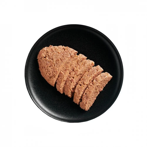 Geflügelfleisch, Herz, Leber, Muskelmagen (70 %); Geflügelbrühe (28,6 %); Eierschalen, getrocknet (0,5 %); Mineralstoffe (0,5 %); Lachsöl (0,4 %)