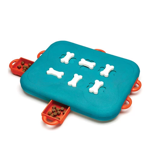 Zeigen Sie Ihrem Haustier erst wie sie die Schubladen dieses Spielzeugs befĂŒllen. Die Knochen mĂŒssen sich in der Blockierposition befinden und dann mĂŒssen Sie die Schubladen schlieĂen. Dann geben Sie Ihrem Haustier das Zeichen zu beginnen. Um es noch schwieriger zu machen, können Sie die Knochen so drehen, dass sie die Schubladen blockieren. Dann muss Ihr Haustier die Knochen drehen, um an die Snacks zu gelangen. Danach mĂŒssen Sie Ihrem Haustier beibringen, dass diese Aktion zum Ăffnen der Schublade fĂŒhrt. Versuchen Sie, Ihrem Haustier Anweisungen zu geben und loben Sie jeden Fortschritt im Spiel mit Begeisterung.